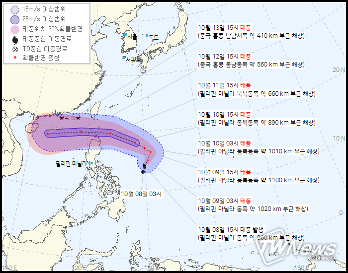 13일 15시 중국 홍콩 남남서쪽 약410km부근해상