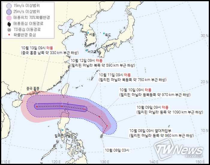 10일 09시 필리핀 마닐라 동북동쪽 약970km부근해상
