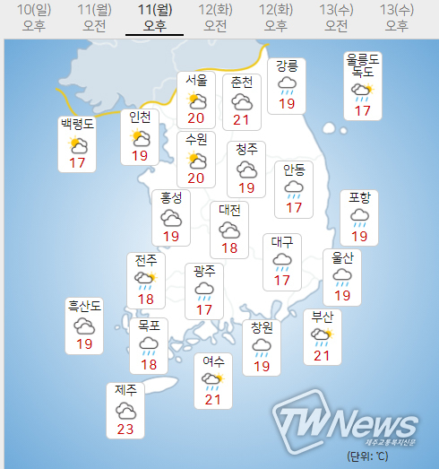 (강수) 11일(월) 오전에 비가 오겠다.