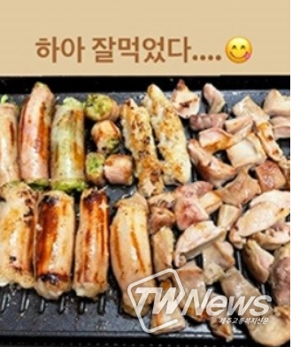 지난 9일 송가인은 자신의 인스타그램 스토리에 "하아 잘 먹었다...."라는 글과 사진을 게시했다.