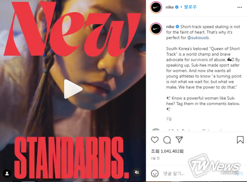 해당 영상은 심석희의 인스타그램에도 게재됐지만 현재는 삭제된 상태로, 나이키 공식 인스타그램에서만 이 영상을 확인할 수 있다.