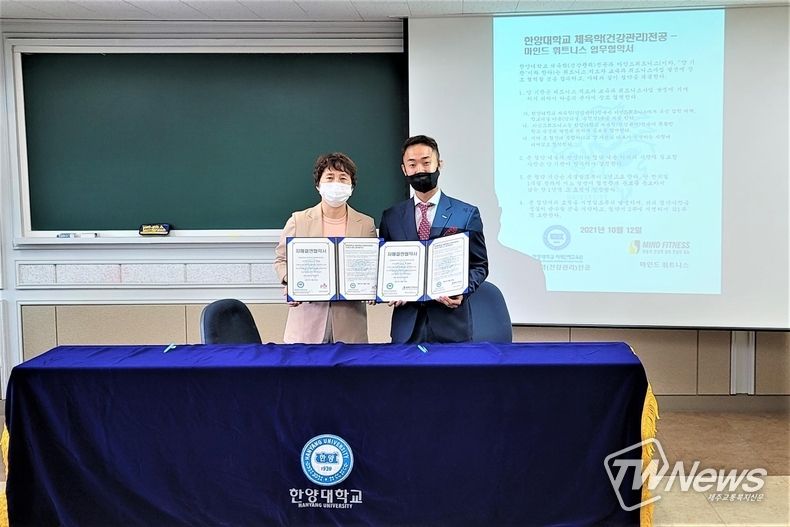 [제주교통복지신문 신혜정 기자] 마인드휘트니스와 한양대학교는 피트니스 지도자 교육 및 피트니스 사업 발전을 위한 업무협약을 체결했다고 밝혔다.