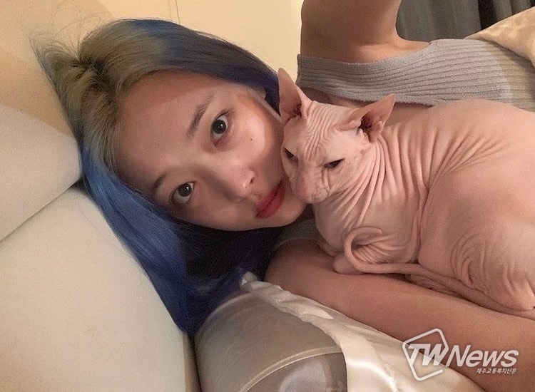 사진 속에는 반려묘를 안고 있는 故 설리의 모습이 담겨있다.
