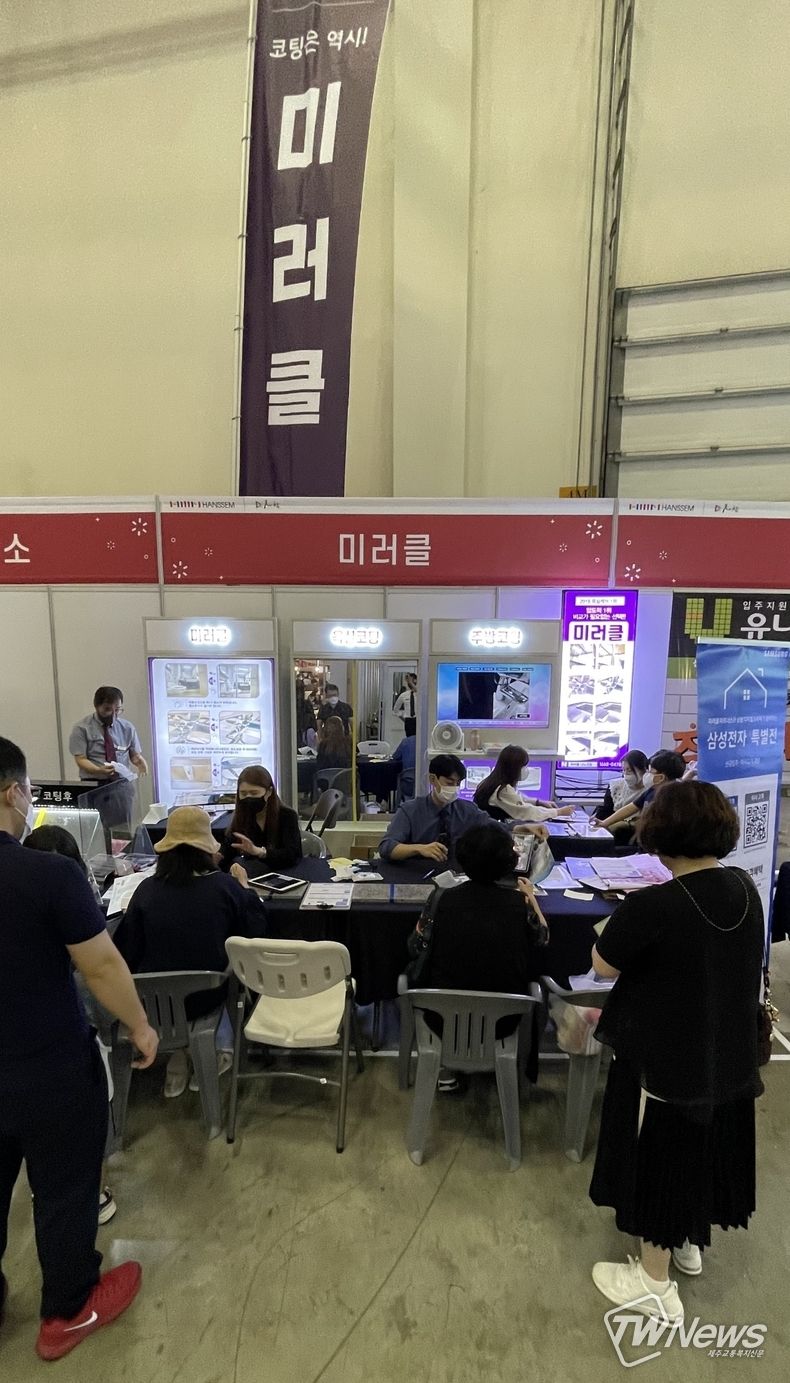 미러클 행사 부스에서는 욕실과 주방에 물때와 기름때, 곰팡이 방지를 위한 항균코팅을 할인 가격에 진행하며 이벤트도 함께 진행한다.