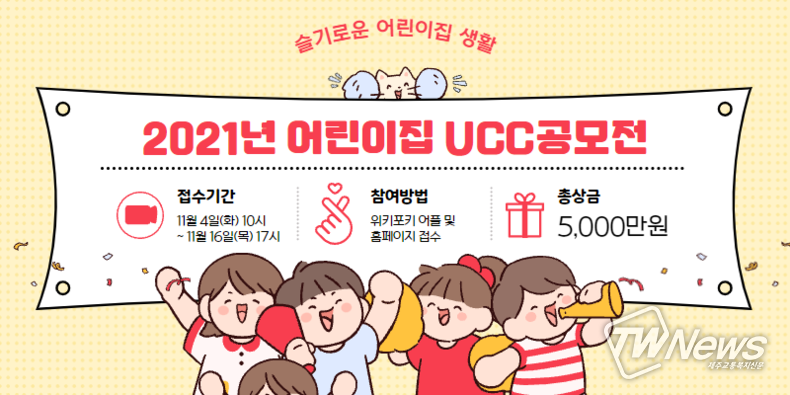 [제주교통복지신문 신혜정 기자] 한국어린이집총연합회 UCC공모전이 작년에 이어 올해에도 ‘제3회 한국어린이집총연합회 UCC공모전’으로 개최된다.