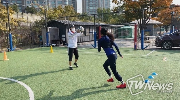 공개된 사진 속 한채아는 운동복을 제대로 갖춰 입은 모습으로 축구 연습에 매진하고 있다. 며느리에게 축구를 가르치는 시아버지 차범근의 모습이 눈길을 끈다. 뛰어다니면서 공을 주고받는 한채아의 솜씨는 사진만으로도 범상치 않다. 넓은 운동장 위의 두 사람은 축구의 재미에 푹 빠져있다.
