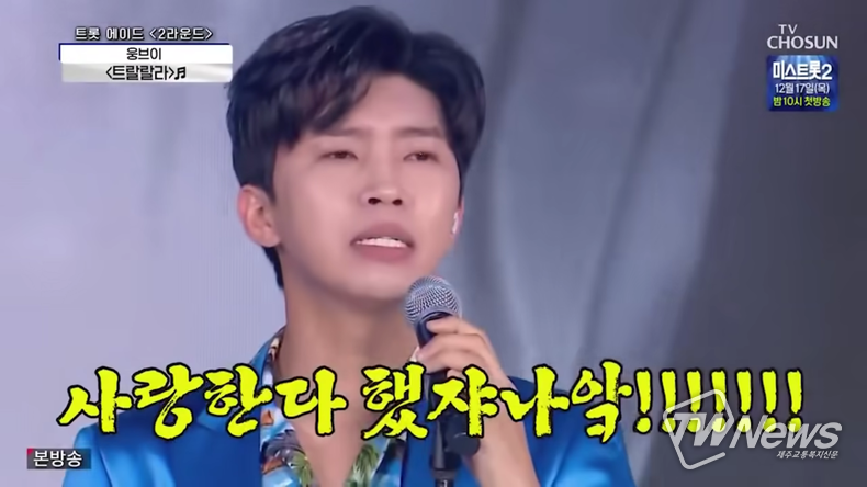 영상 속 임영웅은 TV조선 '사랑의 콜센타' 트롯 에이드 2라운드 모습을 담은 영상에서 유브이(UV) 유세윤, 뮤지와 '웅브이'를 이뤄 코믹한 무대를 만들었다.