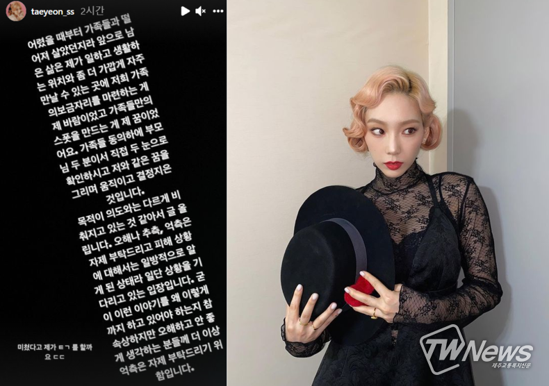 28일 태연은 자신의 인스타그램 스토리에 자신의 입장을 설명하는 글을 게재했다.