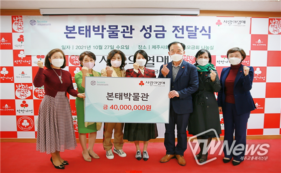 [제주교통복지신문 김현석 기자] 본태박물관(관장 김선희)은 지난 27일 제주 지역의 소아암 어린이를 돕는 데 사용해 달라며 성금 4,000만원을 제주사회복지공동모금회(회장 김남식)에 기탁했다.