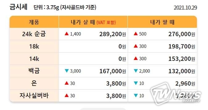 은(Silver-3.75g)은 3,800원에 구입할 수 있으며, 팔때는 2,960원에 거래 가능하다.