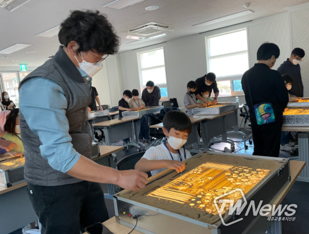 이날 활동은 샌드아트 체험을 중심으로 운영됐으며, 모래판 위에 한라산과 억새, 돌고래 등 제주의 자연환경과 동식물을 아버지와 자녀가 함께 그려보는 시간을 가졌다.