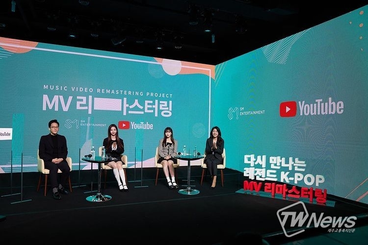 4일 오전 SM엔터테인먼트는 유튜브 생중계를 통해 ‘SM-유튜브 리마스터링 프로젝트’ 발표 간담회를 진행했다. 이 자리에는 SM의 이성수 대표와 유튜브 측의 이선정 전무, 에스파의 카리나와 지젤이 참석했다.
