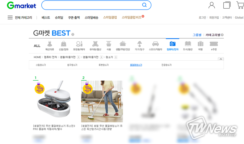 [제주교통복지신문 신혜정 기자] G마켓과 옥션, G9에서 11월 12일까지 진행되는 빅스마일데이에 생활가전 브랜드 로엘(ROEL)이 참여해 물걸레청소기 부분의 1위와 2위를 동시에 달성했다고 밝혔다.