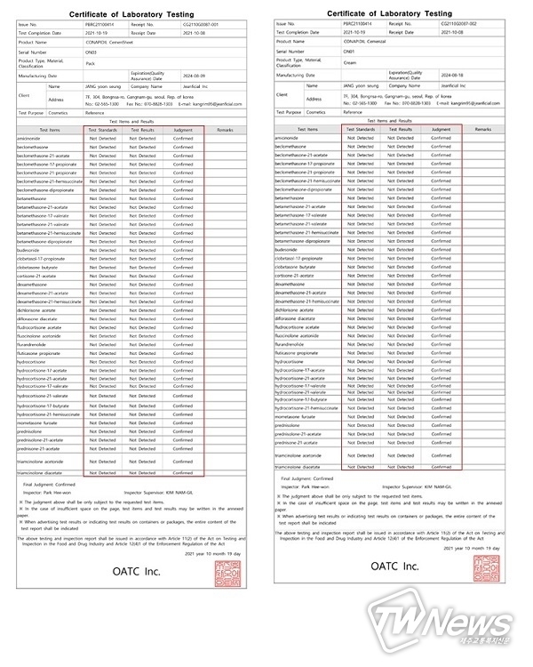 코나피딜은 이번 검사를 진행하게 된 배경은 코나피딜 제품을 사용한 피부관리실이나 소비자들에게 피부에 피드백이 빠른 것 보니 스테로이드 사용이 의심된다는 문의가 많아 소비자들의 불안감을 해소하기 위해 진행했다고 설명했다.