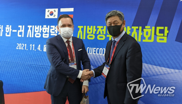 또한, 30년 전 역사상 첫 한-러 정상회담이 제주에서 개최된 특별한 인연을 소개하며 제주에서 매년 개최되는 국제전기자동차엑스포, 국제관악제 등에 러시아 지자체와 정부가 적극 동참해줄 것을 제안했다.