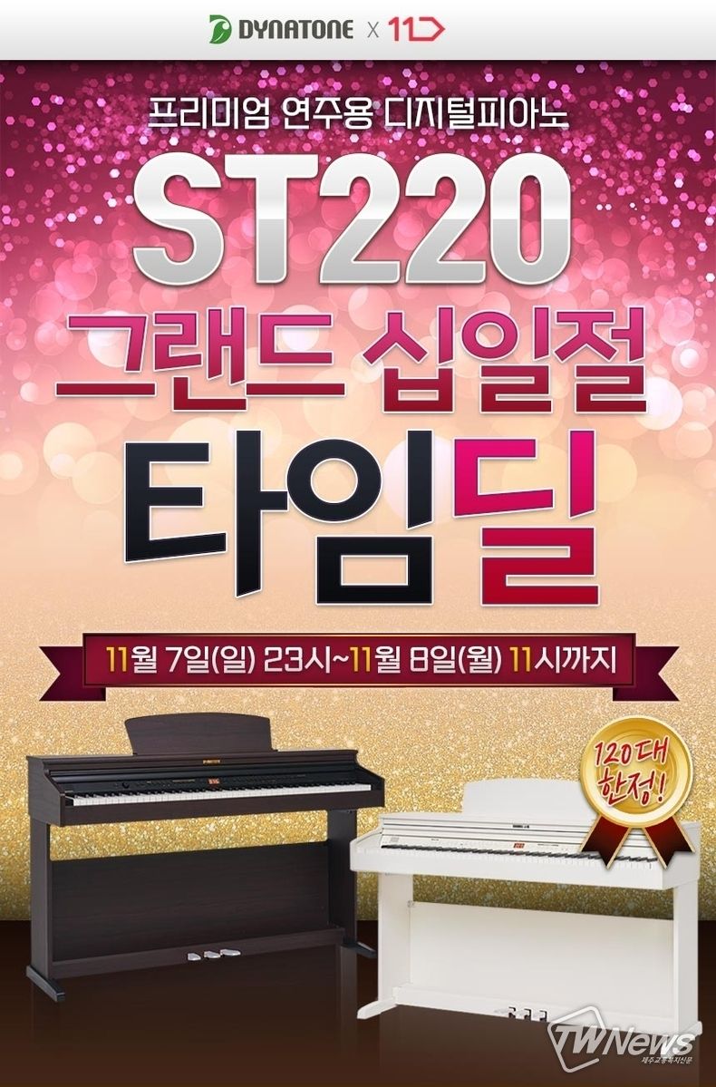 [제주교통복지신문 신혜정 기자] 디지털피아노 전문 브랜드 다이나톤(대표 도상인)이 오는 11월 7일(일) 23시부터 8일(월) 11시까지 11번가에서 그랜드 십일절 타임딜 행사를 진행한다.