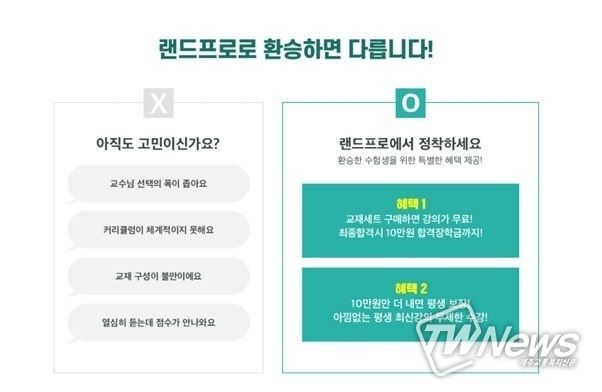 랜드프로 관계자는 “공인중개사 수험생들이 더 빠르고 쉬운 합격을 위해 랜드프로에 정착할 수 있도록 풍성한 수강 혜택의 ‘환승 이벤트’를 마련했다. 이번 기회에 교재비만으로 ‘올패스 연회원반’을 수강하고, 더욱 합리적인 가격에 평생합격보장반 수강 혜택을 경험해보길 기대한다”고 전했다.