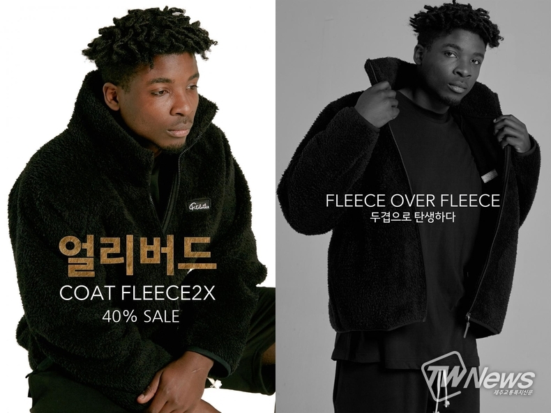 특히, 주력제품인 ‘코트 양털후리스2X’ 는 모든체형을 고려하여 어깨선이 없이 오버사이즈로 디자인된 상품으로 하이넥 과 긴 소매로 출시됐다.