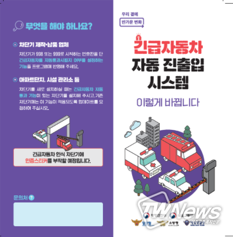 제주시 관계자는 “아파트, 상가 등에 기 설치된 차단기에 긴급자동차가 자동 통과하는 기능을 추가할 수 있도록 앞으로도 지역주민, 시설 관리소, 무인차단기 설치 업체 등을 대상으로 적극적인 홍보를 해나갈 예정”이라고 밝혔다.