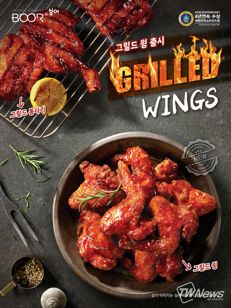 [제주교통복지신문 신혜정 기자] 치킨프랜차이즈 부어치킨이 신메뉴 ‘그릴드 윙’과 사이드 메뉴 3종을 출시한다고 전했다.