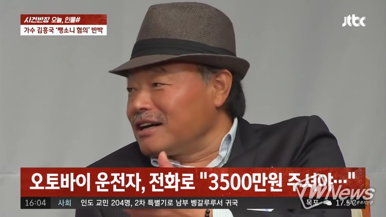 앞서 김흥국은 지난 4월 24일 오전 11시 20분께 용산구 이촌동 사거리에서 스포츠유틸리티차량(SUV)을 운전하던 중 신호를 어기고 불법 좌회전을 하며 오토바이를 들이받은 뒤 도주한 혐의로 입건됐다. 이 사고로 오토바이 운전자는 오른쪽 다리에 전치 3주의 타박상과 열상 등 상해를 입은 것으로 알려졌다.