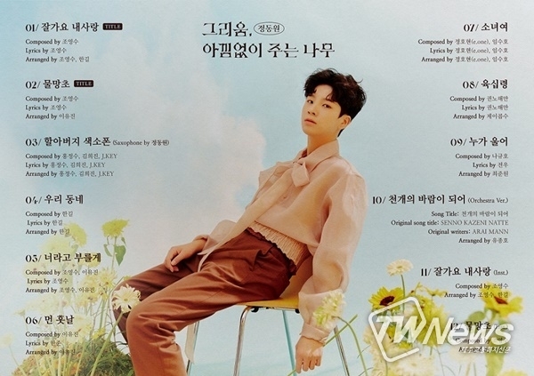 정동원은 오는 17일 첫 정규 앨범 ‘그리움, 아낌없이 주는 나무’를 발매한다. 이에 앞서 정동원 소속사 쇼플레이엔터테인먼트는 지난 10일 공식 SNS를 통해 앨범 트랙리스트를 공개했다.