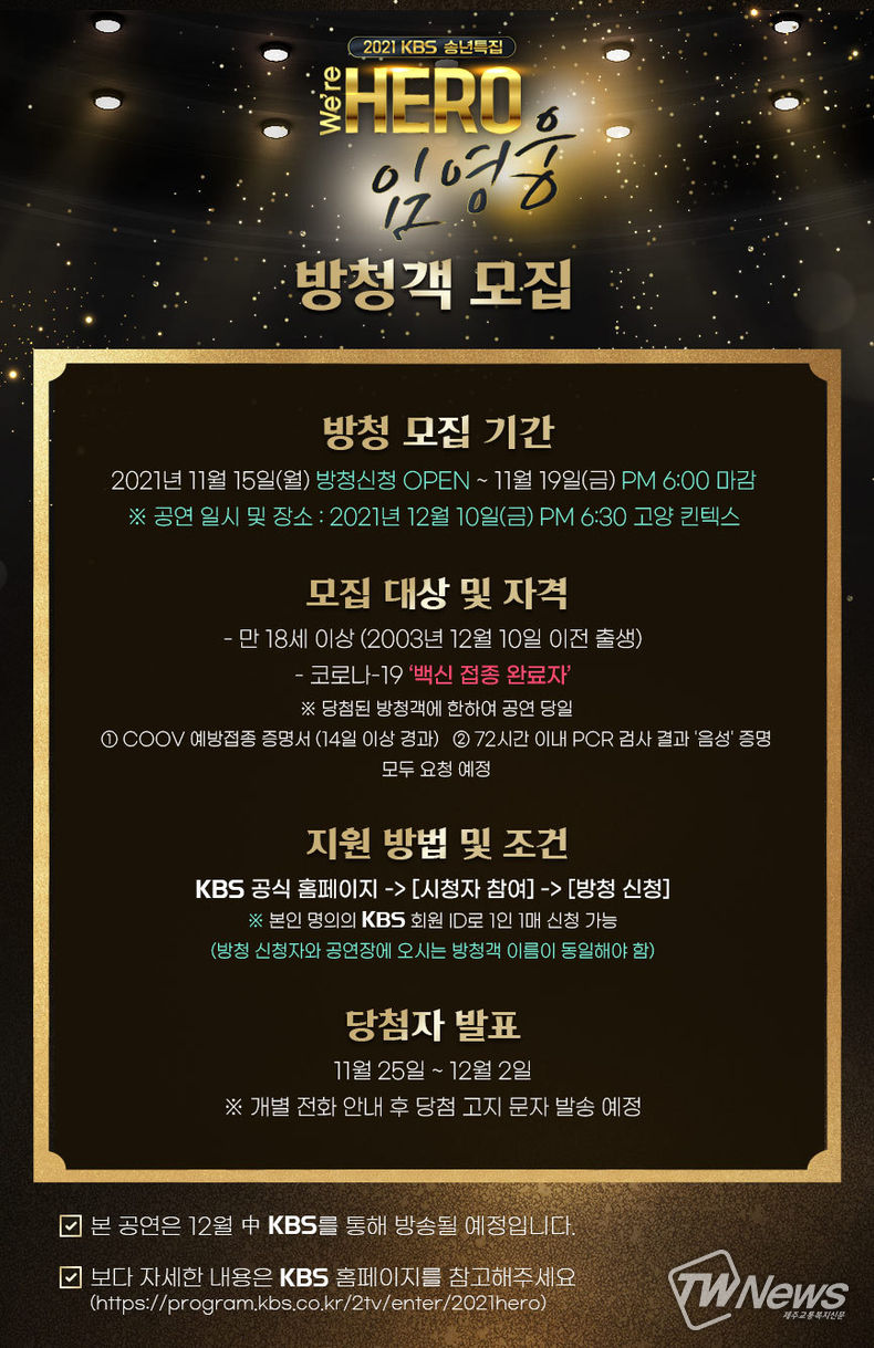 [제주교통복지신문 최효열 기자] 2021KBS송년특집 'We're HERO 임영웅' 방청신청이 시작됐다.
