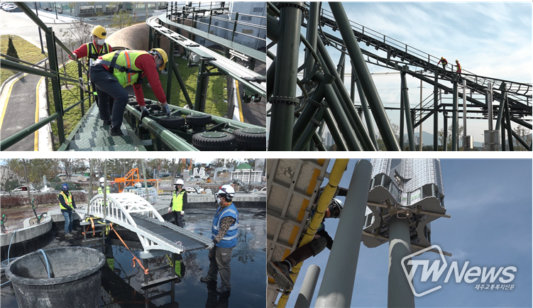 내년 5월 중 오픈 예정인 강원도 춘천의 블록 콘셉트 테마파크. 요즘, 개장을 위한 마무리 작업이 한창이다. 테마파크의 꽃인 놀이기구는 사람이 직접 탑승하기 때문에 무엇보다 안전이 관건이다. 때문에 놀이기구의 점검과 안전을 책임지는 기술자는 테마파크의 필수 인력이다. 높은 레일에 올라가 점검과 수리를 진행하는 등 위험한 작업은 다반사, 각각 놀이기구의 특성이 달라서 수리와 점검 방법을 익히는 게 쉽지 않다는데...