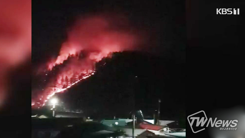 야간 산불진화작업에 상당히 어려움을 겪고 있어 날이 밝으면 진화작업을 다시 재개한다고 소방당국은 밝혔다.
