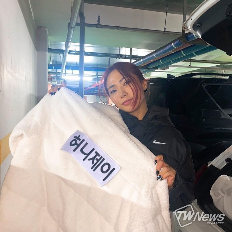 14일 허니제이는 자신의 인스타그램에 여러 장의 사진과 글을 게재했다. 사진 속에는 자신의 이름표가 붙은 옷을 들고 있는 허니제이의 모습이 담겼다.