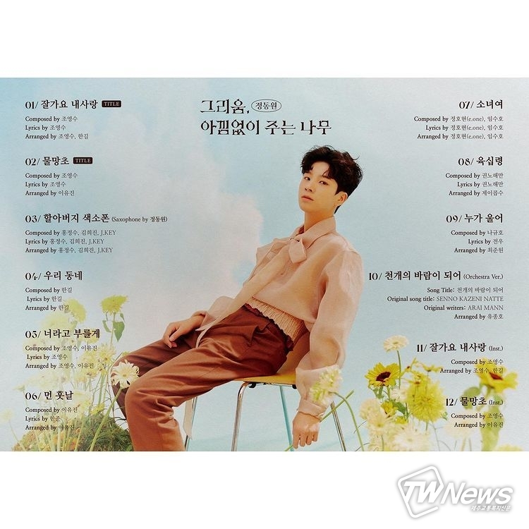 한편, 정동원의 첫 정규 앨범 ‘그리움, 아낌없이 주는 나무’는 오는 17일 오후 6시 각종 온라인 음원 사이트를 통해 발매된다.