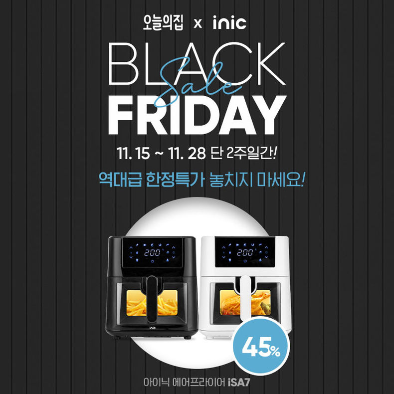 아이닉 관계자는 “2019년 8월, 아이닉 오븐형 에어프라이어 AO-16L을 출시 후 현재까지 총 20만 대의 판매량을 기록하며 많은 사랑을 받고 있다. 하지만 현재에 안주하지 않고 끊임없이 소비자들의 목소리에 귀 기울여, 그 의견을 토대로 꼭 필요한 기능은 담고 더욱 똑똑해진 신제품 에어프라이어 Isa7을 출시하게 됐다”며 “이번 ‘오늘의집 블랙프라이데이’ 행사를 통해 파격적인 할인가로 판매를 진행할 예정이오니 많은 관심 부탁드린다”고 밝혔다.