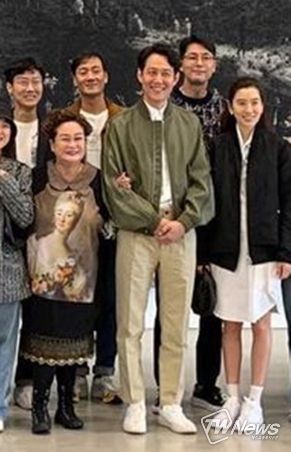 사진 속에는 마르시아노 미술 재단을 방문한 이미경 CJ 부회장, 임세령 대상그룹 부회장 및 넷플릭스 '오징어 게임' 주역인 배우 이정재, 이병헌, 정우성, 박해수, 감독 황동혁 등의 모습이 담겼다. 이 부회장은 이정재와 팔짱을 끼고 있다.