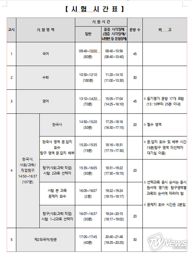 수능시험시간표
