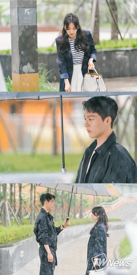 사진 속 하영은은 가을비가 내리는 가운데 우산이 없어 당황한 모습이다. 그런 그녀 앞에 윤재국이 나타났다. 우산을 받쳐 든 윤재국의 시선은 오직 하영은에게만 고정돼 있다. 마지막 사진에서는 하나의 우산을 쓴 채 마주 선 하영은과 윤재국의 모습을 확인할 수 있다.