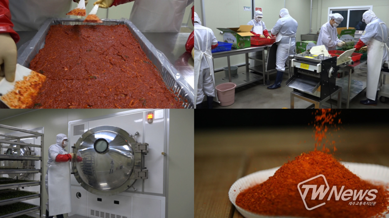 그러나 건조 자체를 제외한 모든 작업에 사람의 손이 필요하다. 대량의 청양고추를 세척 및 절단해서 분쇄하기까지, 청양고추 조미료를 만드는 내내 작업자들은 독하기 그지없는 매운 향을 견뎌야 한다. 이와 같은 천연 조미료 중 최근 김치를 이용해 만드는 천연 조미료가 인기라는데.