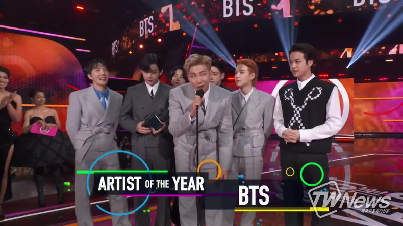 [제주교통복지신문 김현 기자] 우리나라 그룹 방탄소년단이 '2021 아메리칸 뮤직 어워즈'(AMAs)에서 대상격인 '아티스트 오브 더 이어(Artist of the Year)'를 수상했다.