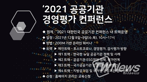 [제주교통복지신문 신혜정 기자] 한국공공기관연구원은 내달 8~9일 웨비나 행사인 ‘2021 대한민국 공공기관 컨퍼런스를 개최한다.
