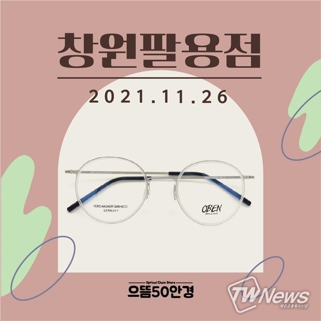 [제주교통복지신문 신혜정 기자] 공장직거래와 대량생산을 통해 안경 및 렌즈 제품을 정찰제로 판매하고 있는 으뜸50안경이 오는 11월 26일, 창원팔용점을 오픈하고 운영에 들어간다고 밝혔다.