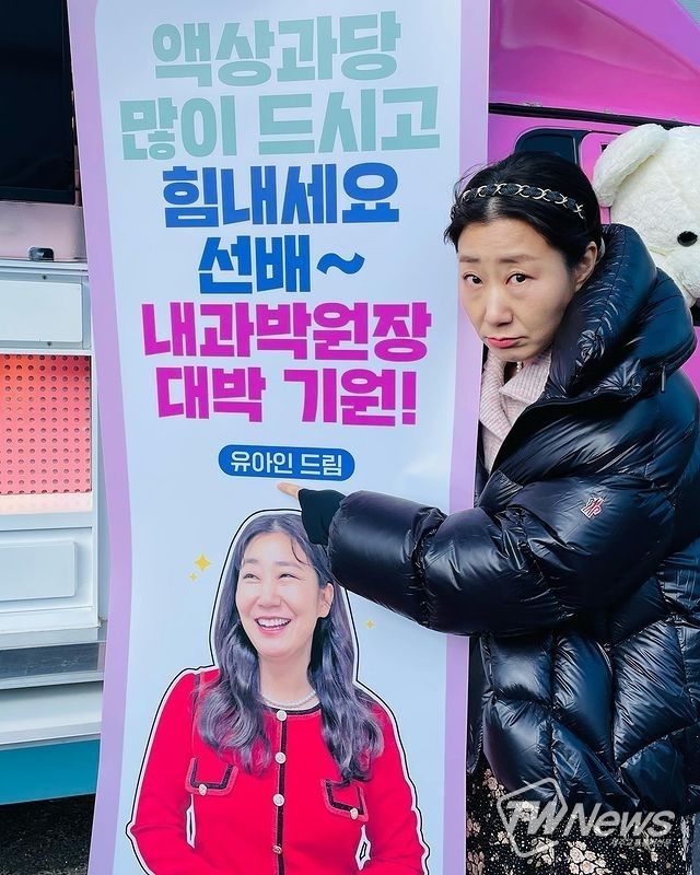 23일 라미란은 자신의 인스타그램에 여러 장의 사진과 함께 “유아인 교주님이 내과 박원장 현장으로 보내준 따뜻한 커피차”라는 글을 게재했다.