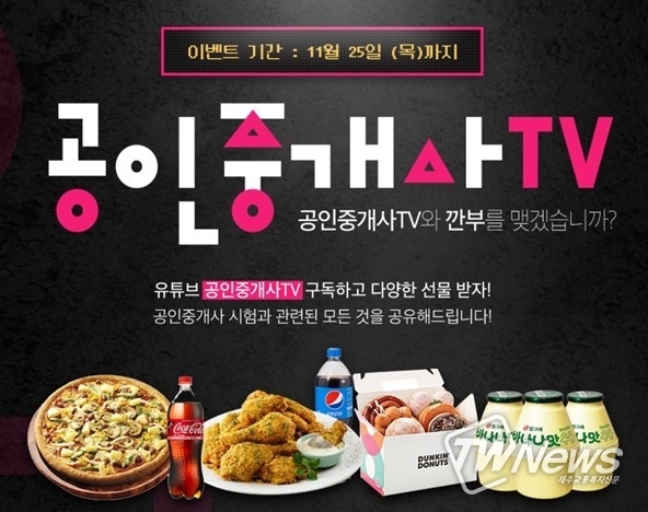 공인중개사 TV 구독 이벤트는 오늘(25일)까지 참여자를 모집하며, 추첨을 통해 푸짐한 선물을 증정한다.