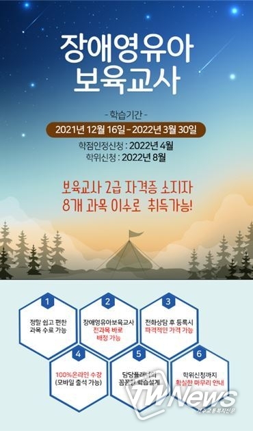 케이스터디 관계자는 “장애영유아보육교사 자격증은 보육교사 2급 소지 대상자라면 이수 및 취득이 가능하다“라고 전했다.