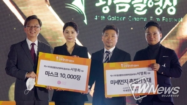 [제주교통복지신문 신혜정 기자] 20일 개최된 제41회 황금촬영상영화제가 성공적으로 열린 가운데, 해당 영화제의 홍보대사로 위촉된 배우 서영희와 황금촬영상영화제조직위원회 박정호 홍보위원장과 함께 마스크기부까지 진행하며 훈훈한 영화제로 마무리 됐다고 밝혔다.