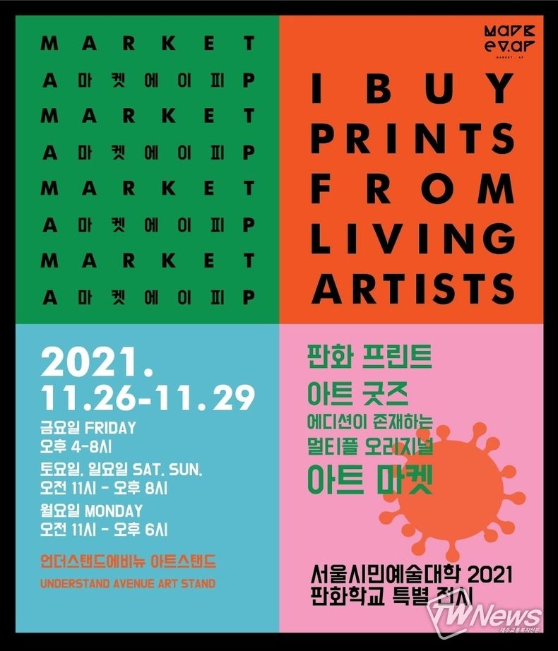 [제주교통복지신문 신혜정 기자] 초보 아트 컬렉터를 위한 판화전문 ‘2021 마켓에이피’가 오는 26일부터 29일까지 서울숲 언더스탠드에비뉴 아트스탠드에서 개최된다고 밝혔다.