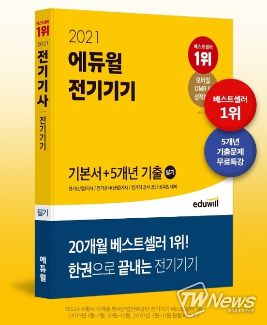 [제주교통복지신문 민진수 기자] 종합교육기업 에듀윌(대표 박명규)은 온라인서점 YES24 전기기기 부문에서 11월 베스트셀러 1위를 차지한 ‘2021 에듀윌 전기기기 필기 기본서+5개년 기출’ 교재를 선보인다고 27일 밝혔다.