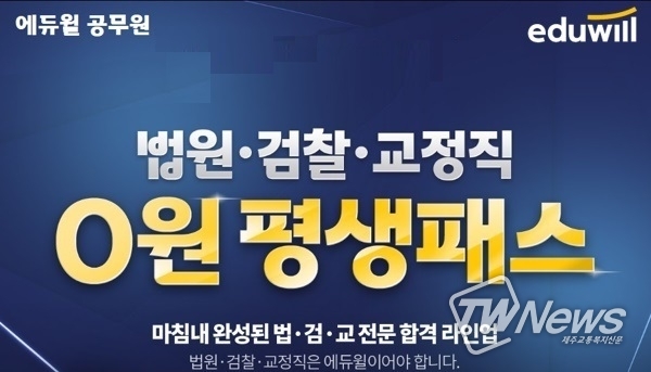 [제주교통복지신문 이주원 기자] 종합교육기업 에듀윌(대표 박명규)은 합격을 위한 필수 혜택으로 무장한 법원·검찰·교정직 공무원 '평생패스'를 운영한다고 28일 밝혔다.