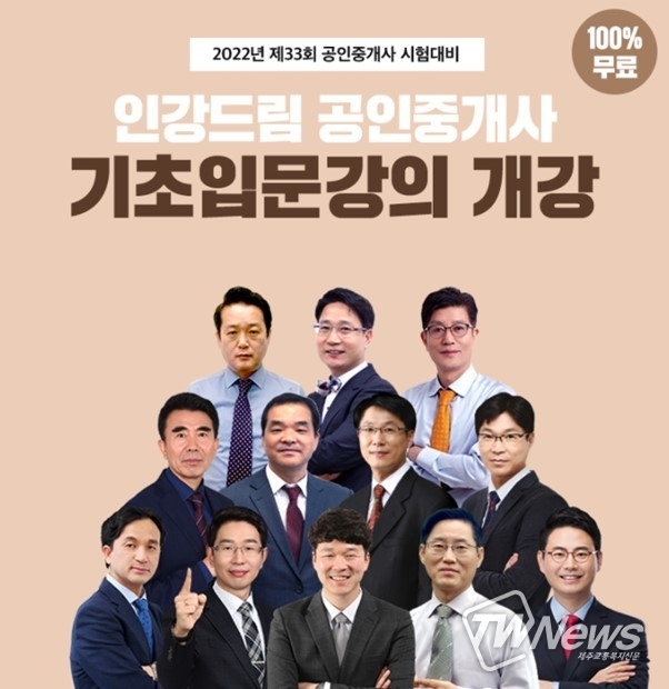 [제주교통복지신문 김지홍 기자] 무료인강 인강드림이 2022년 공인중개사 시험 대비 기초입문강의를 선보인다고 전했다.