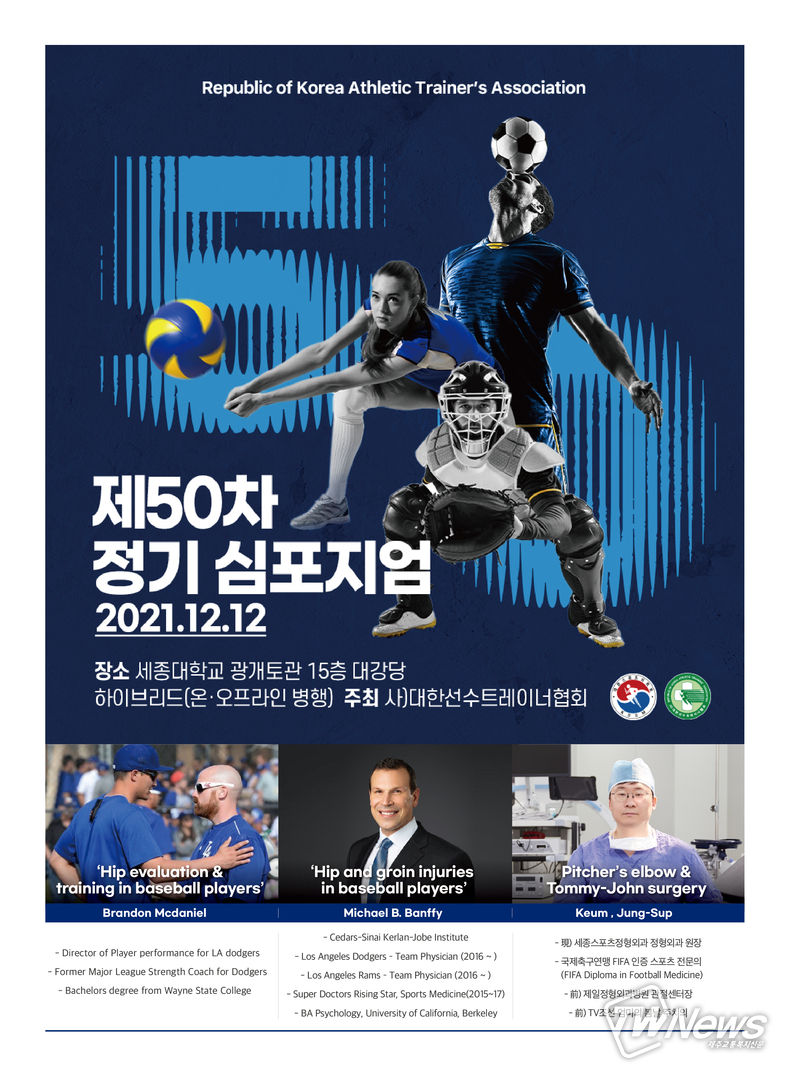 [제주교통복지신문 민진수 기자] 대한선수트레이너협회 제50차 정기 심포지엄이 오는 12월 12일 온라인과 세종대학교 광개토관 대강당에서 온오프라인을 함께 진행하는 하이브리드 형태로 개최된다.