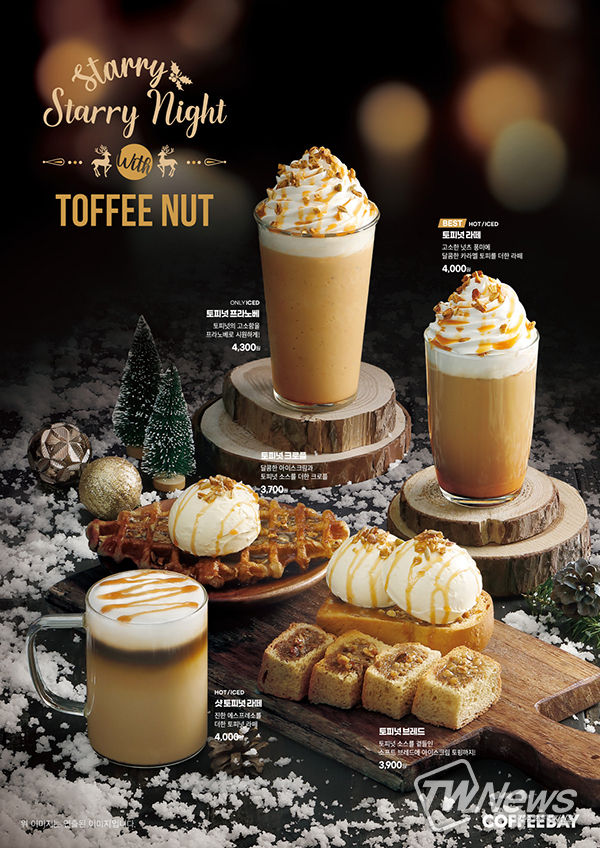 [제주교통복지신문 박희찬 기자] 커피베이는 올겨울을 더욱 달콤하게 만들어 줄 겨울 신메뉴 ‘토피넛 5종’을 29일에 출시했다고 밝혔다.