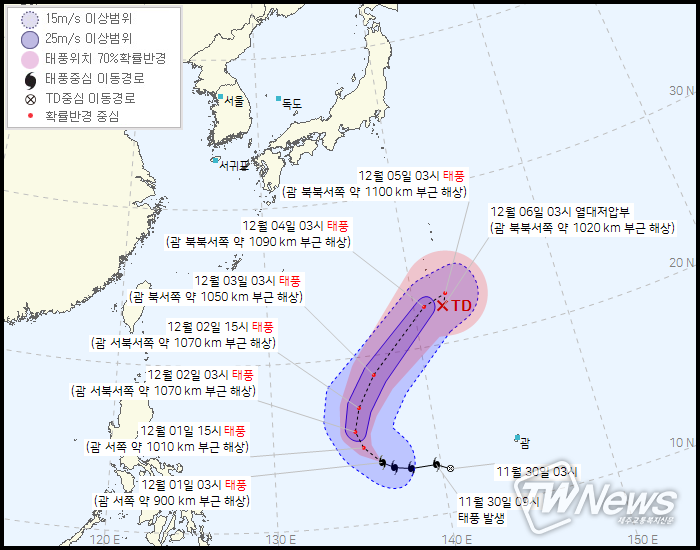 4일 03시 괌 북북서쪽 약 1090km부근해상